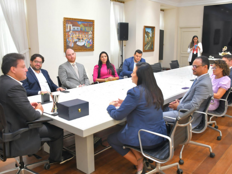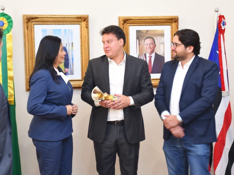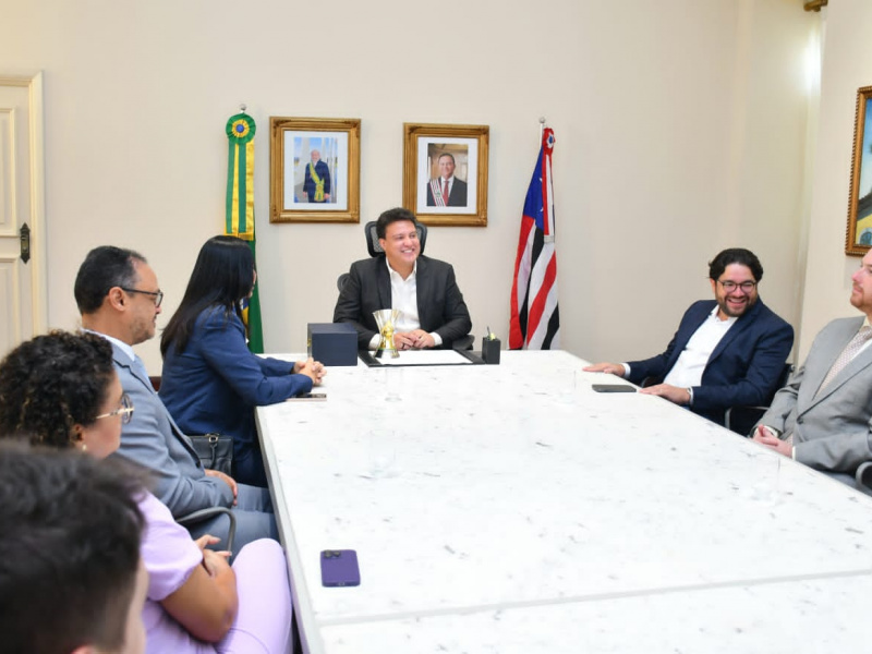 Governador em exercício do Estado do MA, Felipe Camarão, recebe diretoria do TJD-MA em encontro produtivo.
